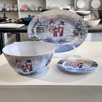 Modern Cross-Border Natal Boneco de Neve Série Grande Prato De Sobremesa Ocidental Salada Tigela Jantar Conjunto Feito De Melamina Sustentável